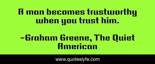 "Graham Greene, The Quiet American Quotes." Quoteslyfe.com, 2025. Sat. 06 Dec. 2025. <https://www.quoteslyfe.com/quote/A-man-becomes-trustworthy-when-you-trust-119192>.