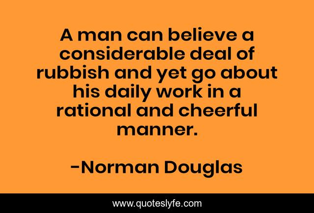 This page presents the quote "A man can believe a considerable deal of rubbish and yet go about his daily work in a rational and cheerful manner.". Author of this quote is Norman Douglas. This quote is about mistakes, blunders,.