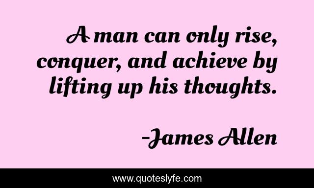 This page presents the quote "A man can only rise, conquer, and achieve by lifting up his thoughts.". Author of this quote is James Allen. This quote is about law-of-attraction, science-of-mind, new-thought,.