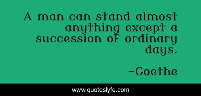This page presents the quote "A man can stand almost anything except a succession of ordinary days.". Author of this quote is Goethe. This quote is about bores, boredom,.