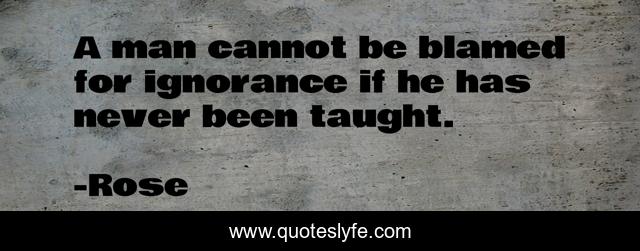 This page presents the quote "A man cannot be blamed for ignorance if he has never been taught.". Author of this quote is Rose. This quote is about life-lesson, philosophy-of-life, philosophy-of-people,.