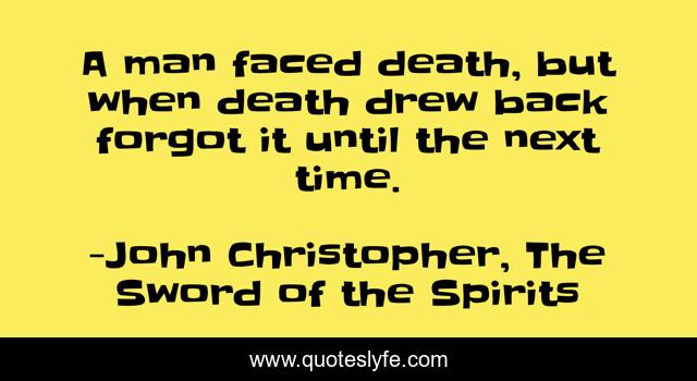 This page presents the quote "A man faced death, but when death drew back forgot it until the next time.". Author of this quote is John Christopher, The Sword of the Spirits. .