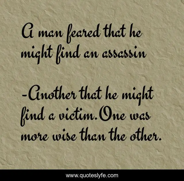 This page presents the quote "A man feared that he might find an assassin". Author of this quote is Another that he might find a victim.One was more wise than the other.. .