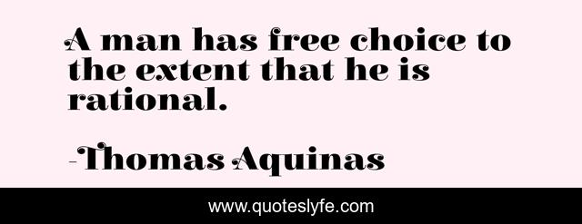 This page presents the quote "A man has free choice to the extent that he is rational.". Author of this quote is Thomas Aquinas. This quote is about free-will, reason,.