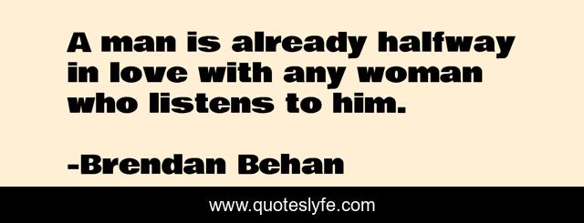This page presents the quote "A man is already halfway in love with any woman who listens to him.". Author of this quote is Brendan Behan. This quote is about woman, him, man,.