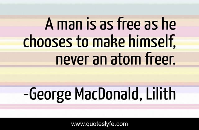 This page presents the quote "A man is as free as he chooses to make himself, never an atom freer.". Author of this quote is George MacDonald, Lilith. .