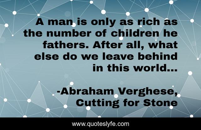 This page presents the quote "A man is only as rich as the number of children he fathers. After all, what else do we leave behind in this world...". Author of this quote is Abraham Verghese, Cutting for Stone. .