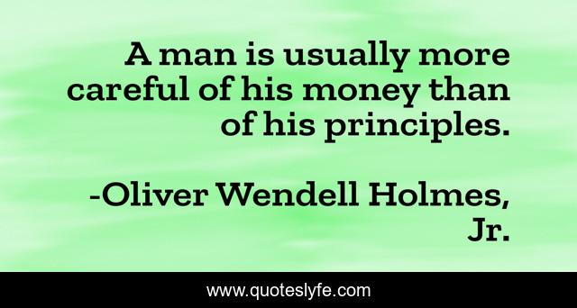 This page presents the quote "A man is usually more careful of his money than of his principles.". Author of this quote is Oliver Wendell Holmes, Jr.. This quote is about principles, man,.