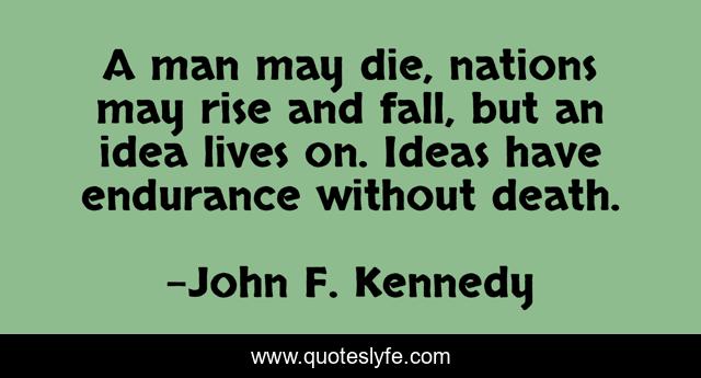 This page presents the quote "A man may die, nations may rise and fall, but an idea lives on. Ideas have endurance without death.". Author of this quote is John F. Kennedy. This quote is about enthusiasm, endurance, ideas, inspirational,.