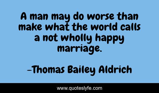 This page presents the quote "A man may do worse than make what the world calls a not wholly happy marriage.". Author of this quote is Thomas Bailey Aldrich. This quote is about world, happy, man,.