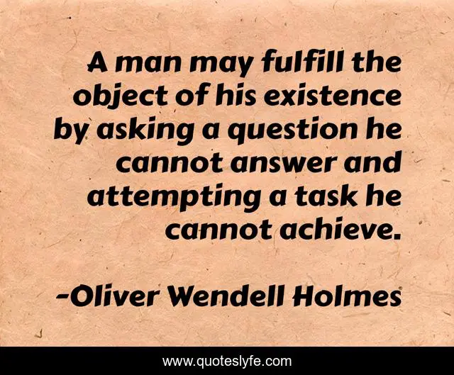 This page presents the quote "A man may fulfill the object of his existence by asking a question he cannot answer and attempting a task he cannot achieve.". Author of this quote is Oliver Wendell Holmes. This quote is about day, one,.