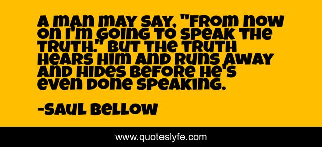 This page presents the quote "A man may say, "From now on I'm going to speak the truth." But the truth hears him and runs away and hides before he's even done speaking.". Author of this quote is Saul Bellow. .