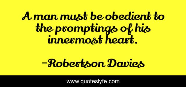 This page presents the quote "A man must be obedient to the promptings of his innermost heart.". Author of this quote is Robertson Davies. .