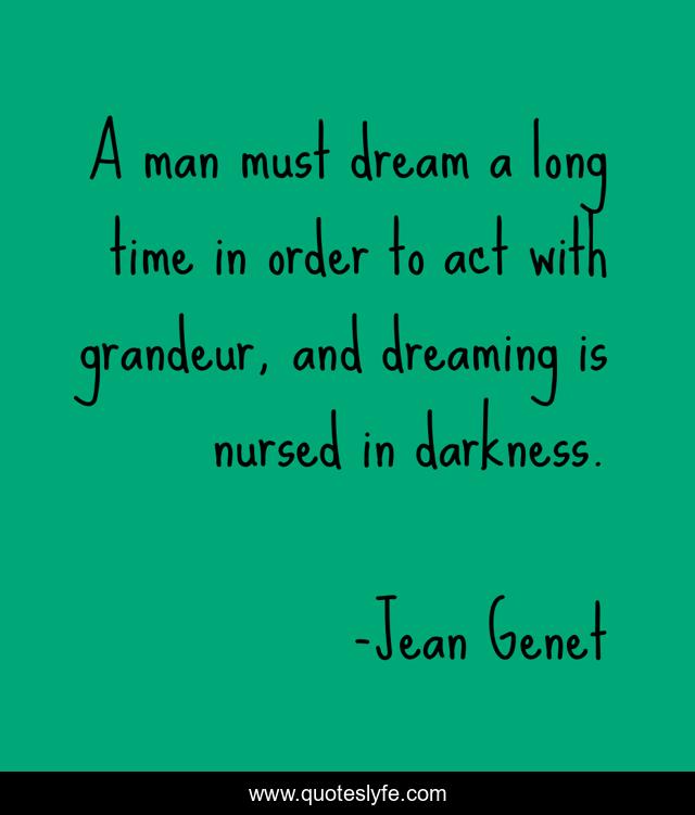 "Jean Genet Quotes." Quoteslyfe.com, 2025. Tue. 09 Dec. 2025. <https://www.quoteslyfe.com/quote/A-man-must-dream-a-long-time-38352>.