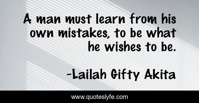 This page presents the quote "A man must learn from his own mistakes, to be what he wishes to be.". Author of this quote is Lailah Gifty Akita. This quote is about be, wise-words, become, wishes, mistakes, inspirational, learn, inner-strength, enthusiasm,.