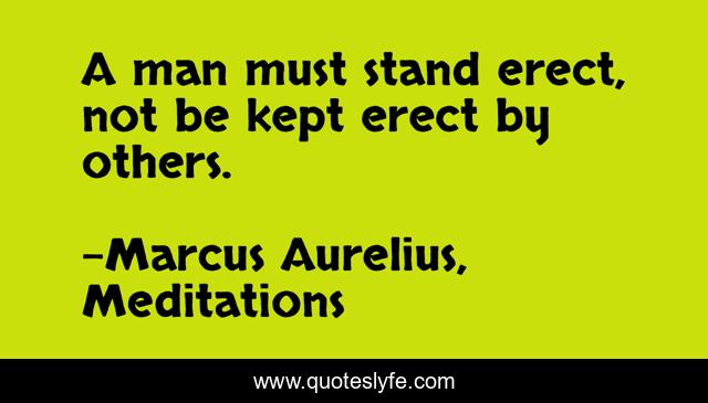 This page presents the quote "A man must stand erect, not be kept erect by others.". Author of this quote is Marcus Aurelius, Meditations. This quote is about strength-of-character, man,.