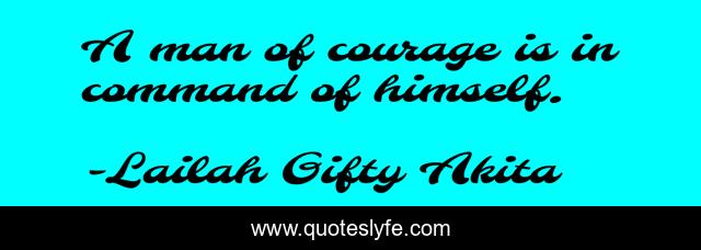 This page presents the quote "A man of courage is in command of himself.". Author of this quote is Lailah Gifty Akita. This quote is about courage, command, inspirational, inner-strength, enthusiasm, man,.