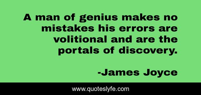 This page presents the quote "A man of genius makes no mistakes his errors are volitional and are the portals of discovery.". Author of this quote is James Joyce. This quote is about genius, mistakes, man,.