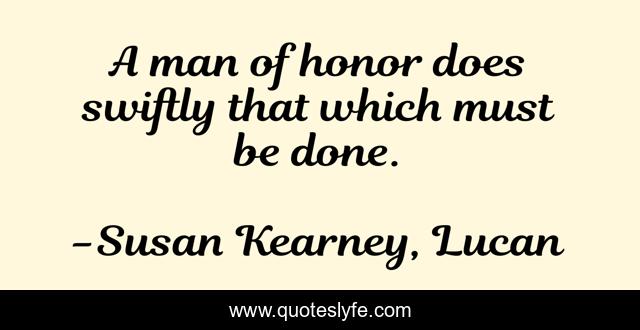 This page presents the quote "A man of honor does swiftly that which must be done.". Author of this quote is Susan Kearney, Lucan. .