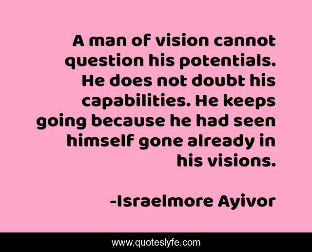 A man of vision cannot question his potentials. He does not doubt his capabilities. He keeps going because he had seen himself gone already in his visions.