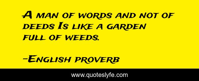 This page presents the quote "A man of words and not of deeds Is like a garden full of weeds.". Author of this quote is English proverb. This quote is about quips, comments,.