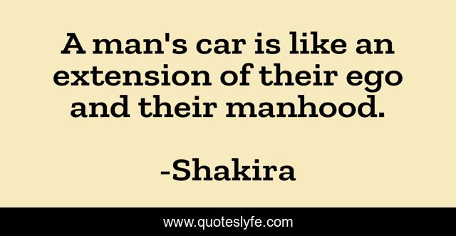 This page presents the quote "A man's car is like an extension of their ego and their manhood.". Author of this quote is Shakira. This quote is about manhood, ego, man,.