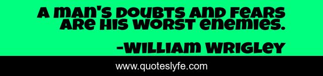 This page presents the quote "A man's doubts and fears are his worst enemies.". Author of this quote is William Wrigley. This quote is about uncertainties, doubts,.