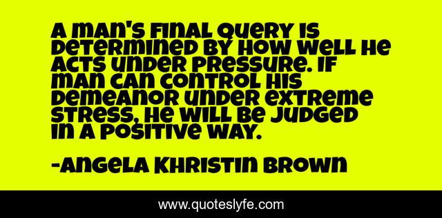 This page presents the quote "A man's final query is determined by how well he acts under pressure. If man can control his demeanor under extreme stress, he will be judged in a positive way.". Author of this quote is Angela Khristin Brown. .