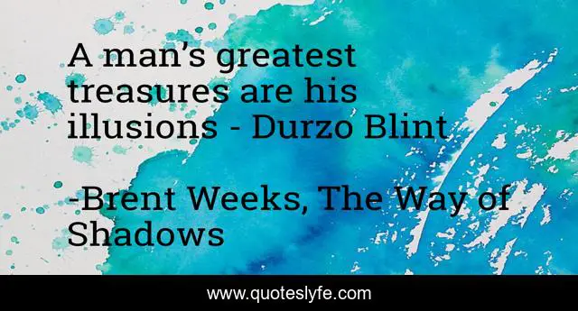 This page presents the quote "A man’s greatest treasures are his illusions - Durzo Blint". Author of this quote is Brent Weeks, The Way of Shadows. This quote is about fantasy, dark-humor,.