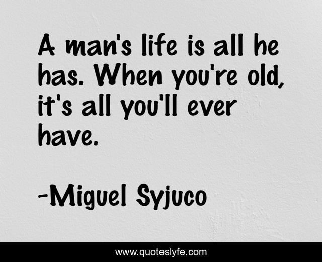 This page presents the quote "A man's life is all he has. When you're old, it's all you'll ever have.". Author of this quote is Miguel Syjuco. This quote is about age, old,.