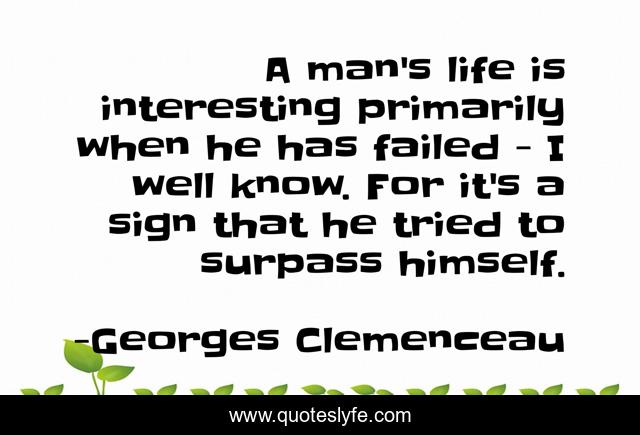 This page presents the quote "A man's life is interesting primarily when he has failed - I well know. For it's a sign that he tried to surpass himself.". Author of this quote is Georges Clemenceau. This quote is about failures, mistakes,.