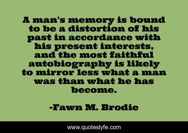 This page presents the quote "A man's memory is bound to be a distortion of his past in accordance with his present interests, and the most faithful autobiography is likely to mirror less what a man was than what he has become.". Author of this quote is Fawn M. Brodie. This quote is about criticism, mormonism, history,.