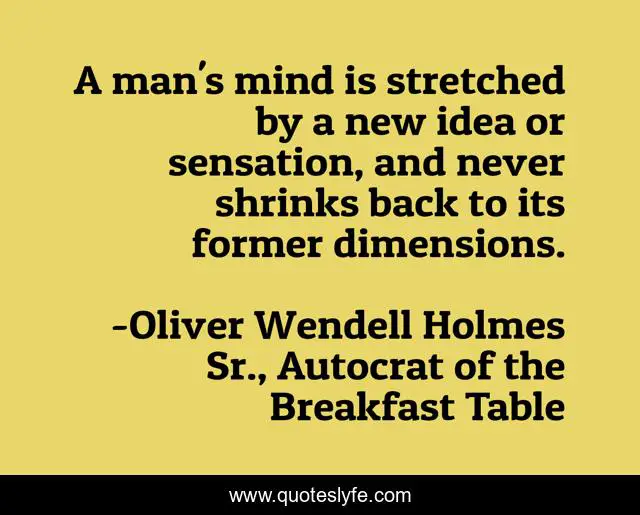 "Oliver Wendell Holmes Sr., Autocrat of the Breakfast Table Quotes." Quoteslyfe.com, 2025. Fri. 05 Dec. 2025. <https://www.quoteslyfe.com/quote/A-man-s-mind-is-stretched-by-86727>.