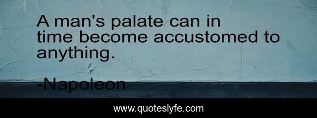 This page presents the quote "A man's palate can in time become accustomed to anything.". Author of this quote is Napoleon. .