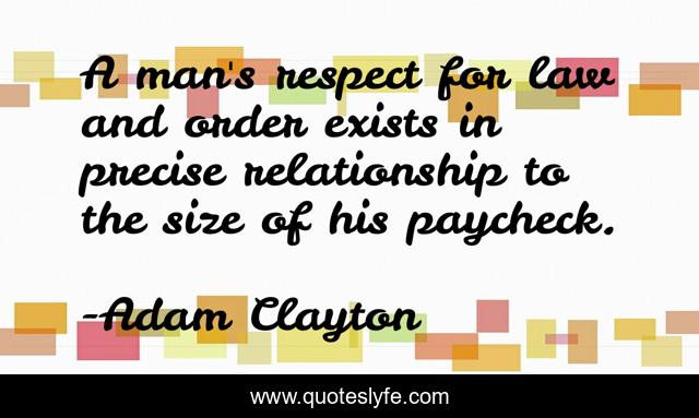 This page presents the quote "A man's respect for law and order exists in precise relationship to the size of his paycheck.". Author of this quote is Adam Clayton. This quote is about law, relationship, man,.