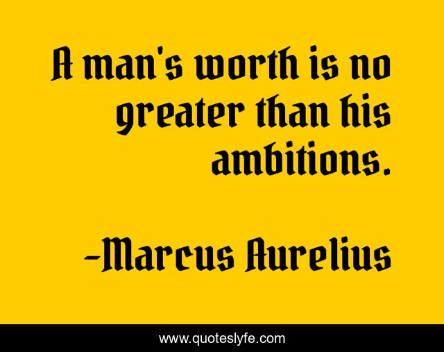 This page presents the quote "A man's worth is no greater than his ambitions.". Author of this quote is Marcus Aurelius. This quote is about worth, man,.