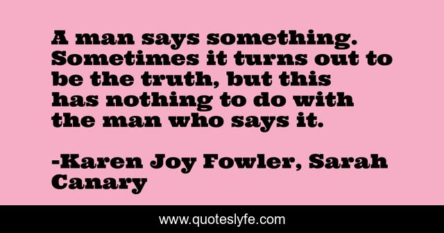 "Karen Joy Fowler, Sarah Canary Quotes." Quoteslyfe.com, 2025. Sun. 07 Dec. 2025. <https://www.quoteslyfe.com/quote/A-man-says-something-Sometimes-it-turns-10068>.