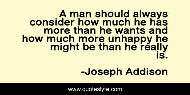 This page presents the quote "A man should always consider how much he has more than he wants and how much more unhappy he might be than he really is.". Author of this quote is Joseph Addison. .
