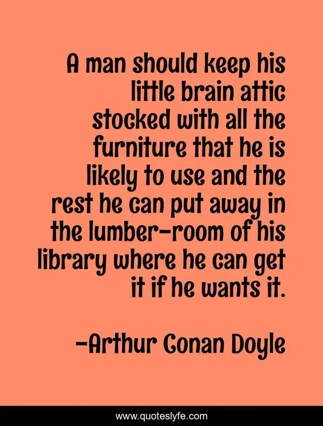 This page presents the quote "A man should keep his little brain attic stocked with all the furniture that he is likely to use and the rest he can put away in the lumber-room of his library where he can get it if he wants it.". Author of this quote is Arthur Conan Doyle. This quote is about scholars, scholarship,.