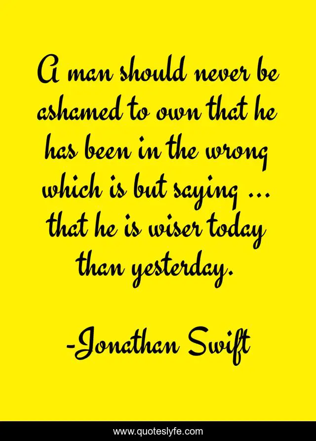This page presents the quote "A man should never be ashamed to own that he has been in the wrong which is but saying ... that he is wiser today than yesterday.". Author of this quote is Jonathan Swift. This quote is about positive, confidence, creating, change,.