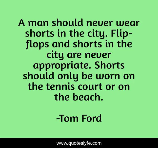 "Tom Ford Quotes." Quoteslyfe.com, 2025. Tue. 09 Dec. 2025. <https://www.quoteslyfe.com/quote/A-man-should-never-wear-shorts-in-279678>.