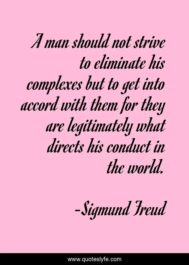 This page presents the quote "A man should not strive to eliminate his complexes but to get into accord with them for they are legitimately what directs his conduct in the world.". Author of this quote is Sigmund Freud. .
