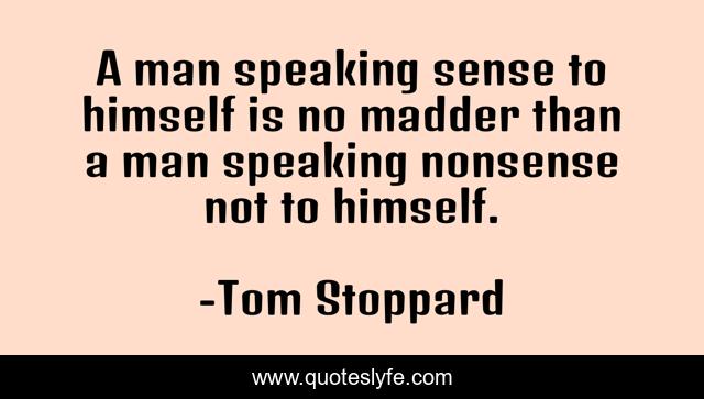 "Tom Stoppard Quotes." Quoteslyfe.com, 2025. Mon. 08 Dec. 2025. <https://www.quoteslyfe.com/quote/A-man-speaking-sense-to-himself-is-220938>.