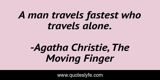 "Agatha Christie, The Moving Finger Quotes." Quoteslyfe.com, 2025. Sat. 06 Dec. 2025. <https://www.quoteslyfe.com/quote/A-man-travels-fastest-who-travels-alone-139241>.