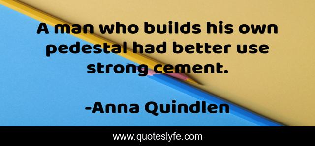 This page presents the quote "A man who builds his own pedestal had better use strong cement.". Author of this quote is Anna Quindlen. This quote is about anna-quindlen, quote, quotes,.