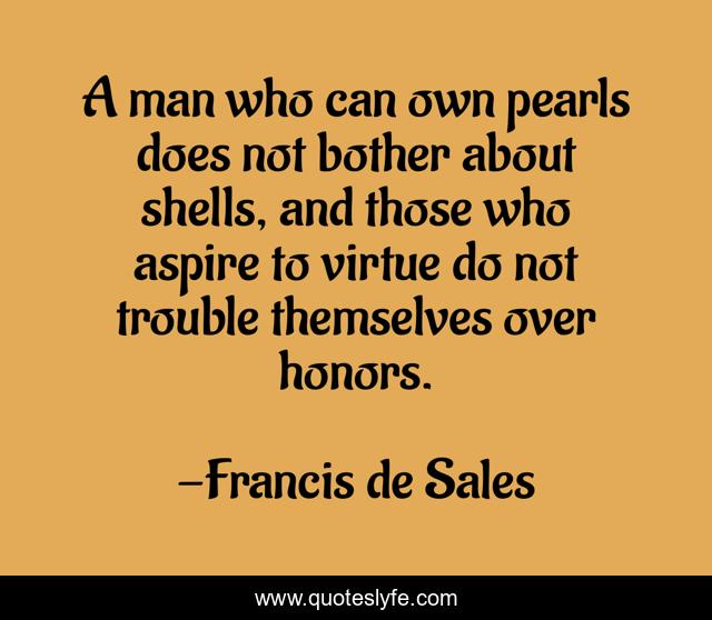 This page presents the quote "A man who can own pearls does not bother about shells, and those who aspire to virtue do not trouble themselves over honors.". Author of this quote is Francis de Sales. This quote is about honor, humility,.