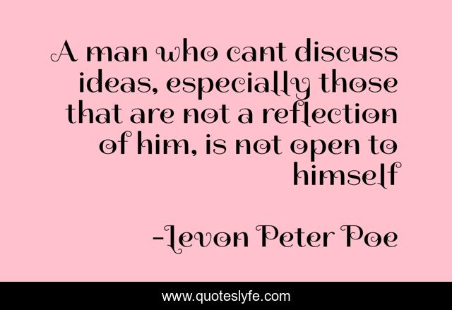 This page presents the quote "A man who cant discuss ideas, especially those that are not a reflection of him, is not open to himself". Author of this quote is Levon Peter Poe. .