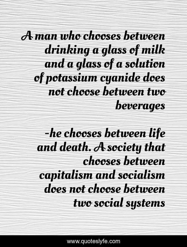 "he chooses between life and death. A society that chooses between capitalism and socialism does not choose between two social systems Quotes." Quoteslyfe.com, 2025. Sat. 06 Dec. 2025. <https://www.quoteslyfe.com/quote/A-man-who-chooses-between-drinking-a-53024>.