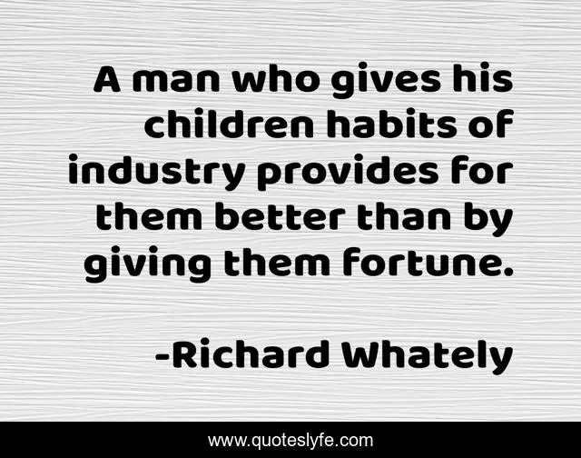 This page presents the quote "A man who gives his children habits of industry provides for them better than by giving them fortune.". Author of this quote is Richard Whately. This quote is about giving, children, man,.