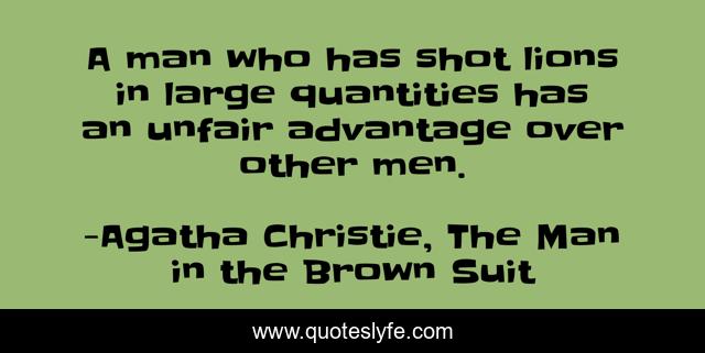 "Agatha Christie, The Man in the Brown Suit Quotes." Quoteslyfe.com, 2025. Sat. 06 Dec. 2025. <https://www.quoteslyfe.com/quote/A-man-who-has-shot-lions-in-217341>.